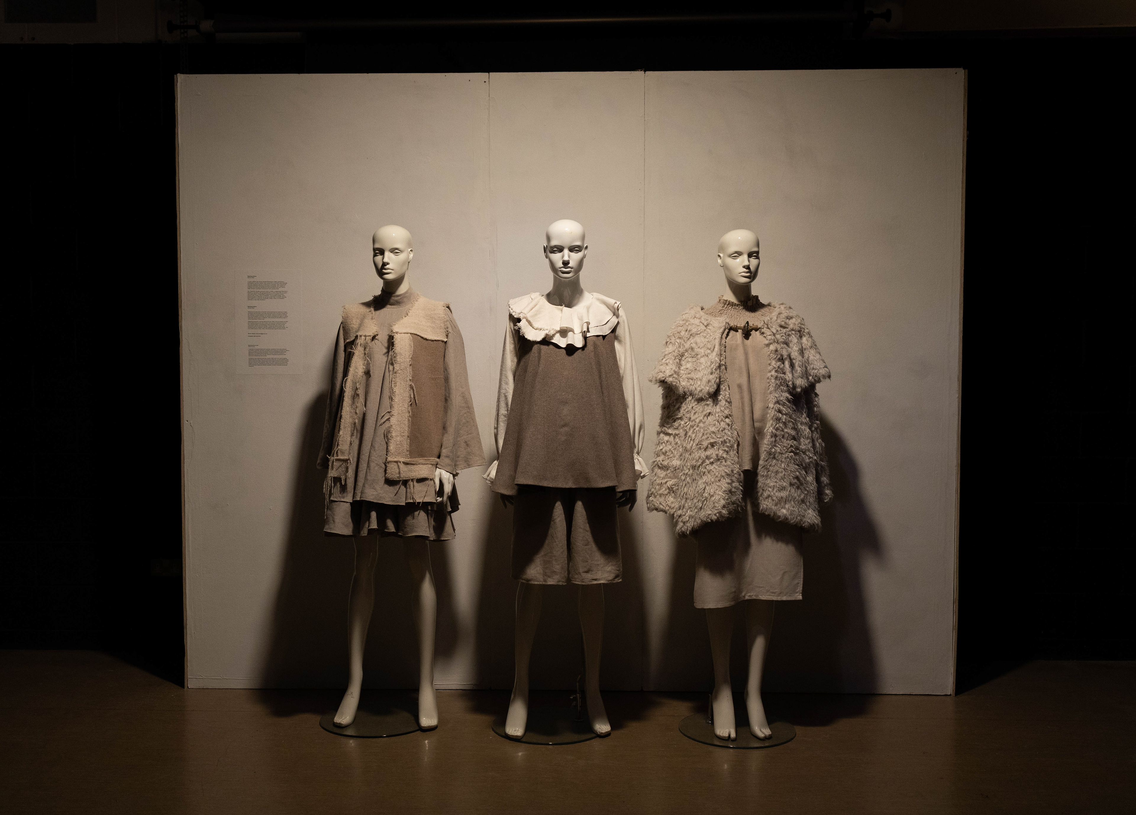 Some of the garments include "damaged" elements - symbols of stolen and fractured identity. Incorporated fabrics handmade in Ukraine in 1930s as a way to reconnect with repair identity through cultural heritage.